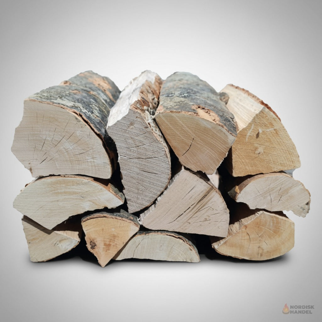 Bøg er et tæt og hårdt træ, som kræver lang lufttørring. Vores brænde er allerede tørret i over 12 måneder under gode forhold og har kun brug for 2-5 måneders eftertørring i tørt, ventileret miljø, før det er klar til brug. Brug gerne en fugtmåler – målet er under 18 % fugt.